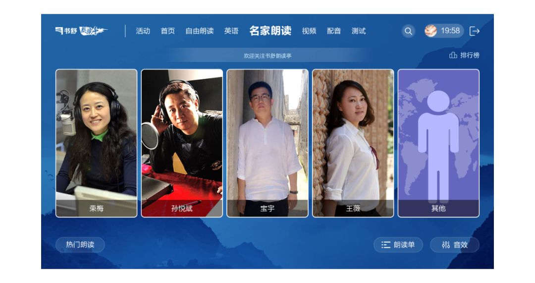 点击名家朗读,选择自己想要朗读的名家朗读过的文章,点击开始朗读后,可以选择原声,结束朗读和重读。