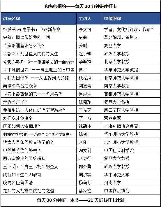 在这个人间最美的四月天里,图书馆为同学们精心挑选了21场精彩讲座,每天30分钟,让你和21位名师相约在春天。