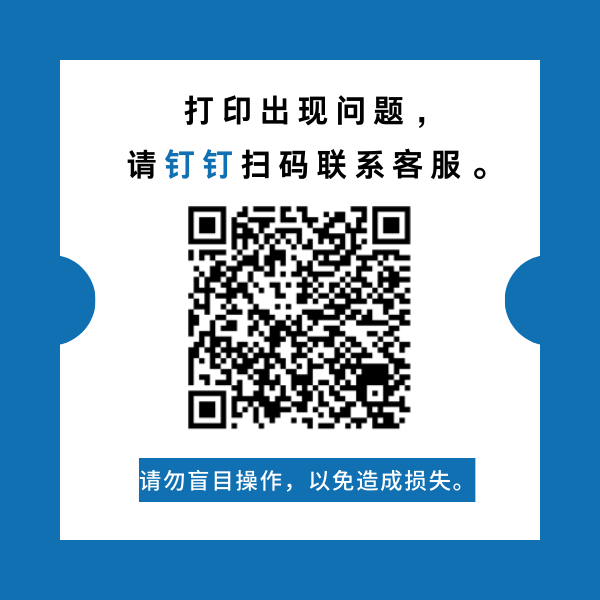 二、打印未出纸以及售后等问题请联系钉钉客服,或求助前台值班教师切莫连续付款和盲目操作,导致电脑以及打印机叠加多个错误任务。