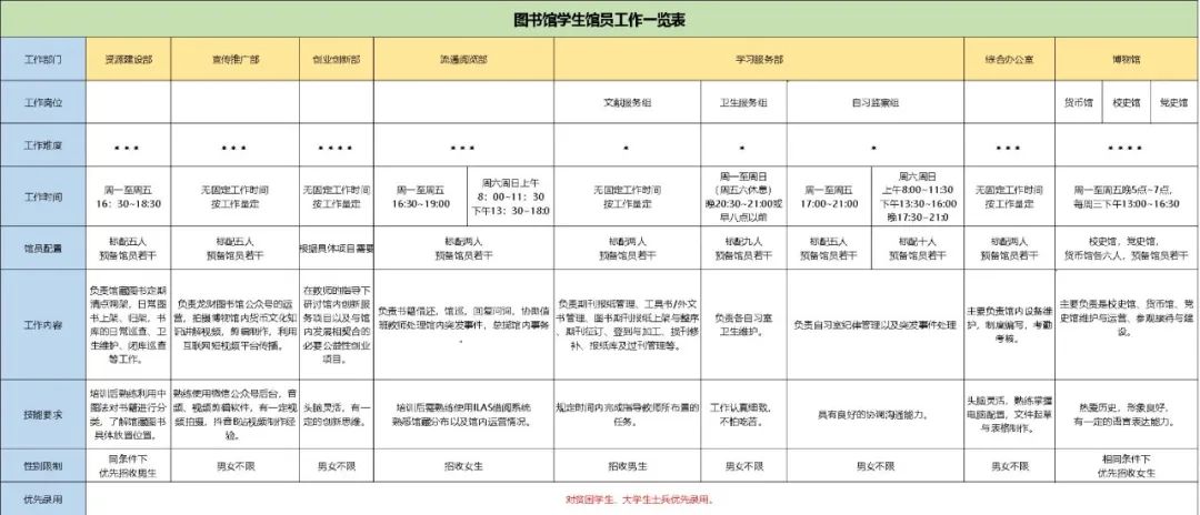 图管会在每年三月中旬和九月新生军训后分别进行纳新,主要面向大一至大三在校学生,达到录用条件要求的经培训后上岗。三月中旬主要利用线上平台发布纳新通知,对少部分空置岗位进行招募。九月份纳新为换届纳新,图管会换届后利用线上线下结合的方式进行空置岗位招募。