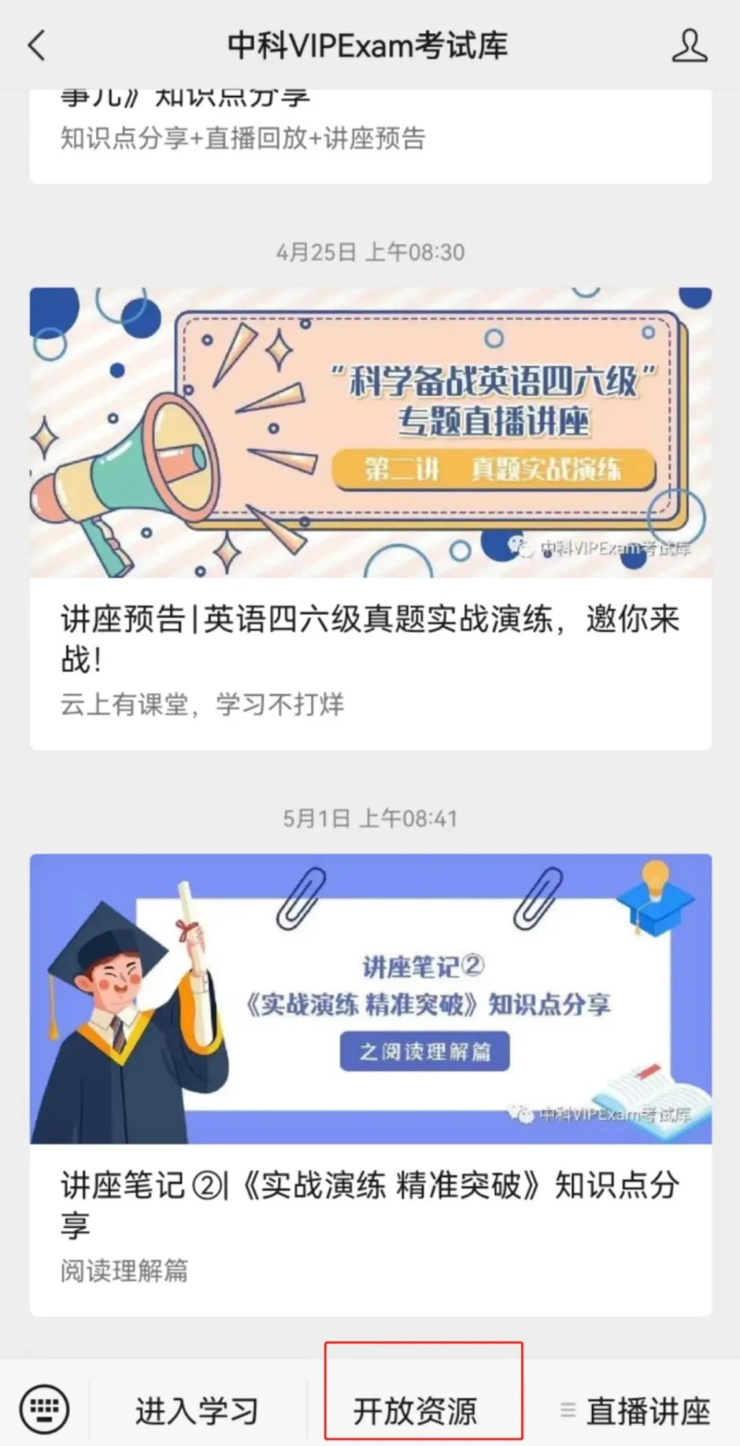 2.点击菜单栏【开放资源】即可免费观看热门职业技能指导专题讲座。