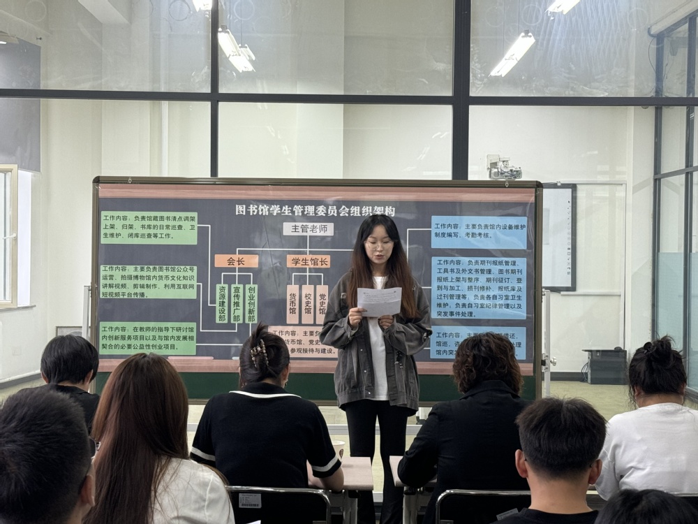 随着新学期的帷幕缓缓拉开,为了进一步提升图书馆的服务质量,促进学生自主管理与服务创新,图书馆学生管理委员会(以下简称“图管会”)于2024年9月4日下午,在图书馆第二研讨间成功举办了换届竞选大会。图书馆馆长、指导教师及业务负责老师全程参与,会长蒙飞伊主持,共同见证了图管会新老成员的交接,开启了图书馆管理与服务的新篇章。