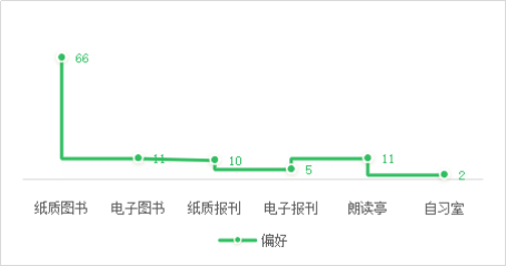 纸质图书仍为主流使用资源,占比超80%;纸质报刊、电子图书、电子报刊使用率较低,分别为13%、11%、5%左右。朗读亭、自习室等空间资源使用频率较高。